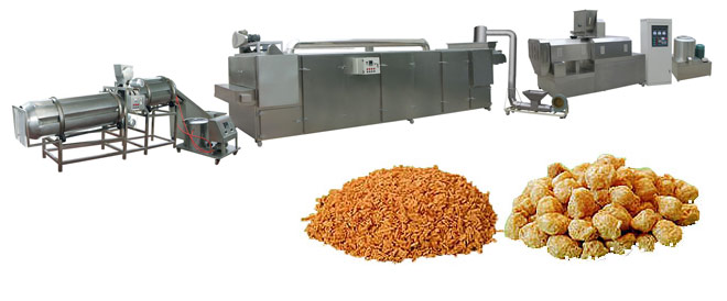 (3)拆絲:將脫水后的拉絲蛋白打散拆絲。把復水脫水后的拉絲蛋白置于快速打漿機中(鈍刀,轉(zhuǎn)速約500~1000rpm),打漿約2~3分鐘即可。也可用轉(zhuǎn)速達300rpm以上的擂潰機、攪拌機拆絲?;蛘邔匕铏C反轉(zhuǎn)(刀背)運行1分鐘左右(切刀速度約500~1000rpm)?!±z蛋白產(chǎn)品具有極佳的結(jié)構(gòu)和真實肉質(zhì)纖維的組織,非常適合用于各類高級素食仿肉食品的加工,如素火腿、素雞、素魚、素漢堡、素熱狗、素茶鵝、素牛排、素肉松等。產(chǎn)品本身亦具有良好的吸水性、保油性,經(jīng)過適當?shù)募庸ぜ夹g(shù)后,是一種理想的高蛋白肉制品添加物,在肉制品應用中,可達到增強肉感,降低成本,提高產(chǎn)品中的蛋白質(zhì)含量的目的。如應用于肉糜腸類、西式火腿、肉丸類、重組排類(雞排、豬排等)、油炸雞塊、漢堡肉類餃子、包子、肉粽等速凍肉制品中;用于諸如仿肉牛肉干,重組牛肉粒,葷素肉松等休閑食品也是絕佳的選擇。拉絲蛋白產(chǎn)品復水即可調(diào)理制作菜肴或代替部分肉品使用,因此可直接供食堂、配餐公司、餐廳等選購。本品不僅操作方便,也倡導了健康營養(yǎng)的飲食新概念,同時可達到降低成本的效果(不到瘦肉成本的1/2),為一新潮流趨勢的食材選擇。