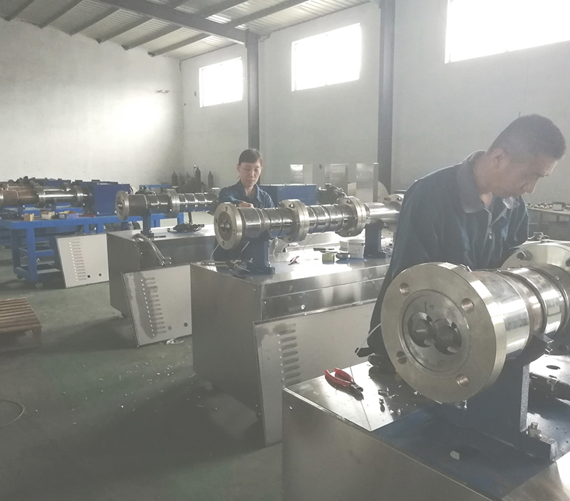 (2)擠出系統(tǒng): 由螺桿,機(jī)筒,連接段組成; 螺桿為38crmoal材料,滲氮深度5mm,耐磨耐用,機(jī)筒為國(guó)標(biāo)45號(hào)鋼,與螺桿配合間隙控制在0.5mm以?xún)?nèi)