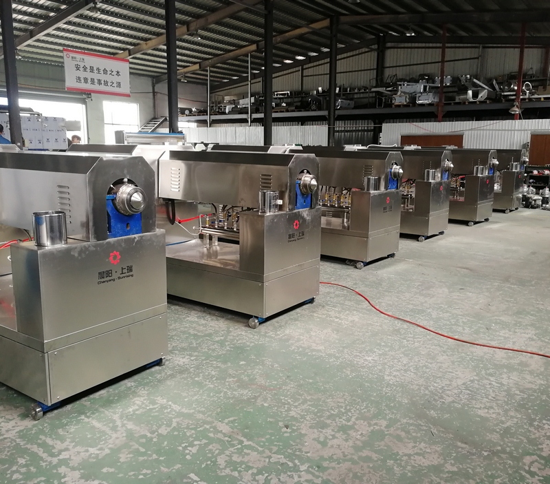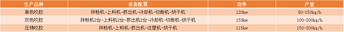 直接擠出型咬膠主要加工條狀、棒狀雙色咬膠,其形狀通過磨具擠壓后直接定型,通過切斷機切斷后達到要求的理想尺寸。其形狀根據(jù)產(chǎn)品要求開模,五角星、五棱、六棱、十字、狗骨頭,、雙色熊掌、五花肉等形狀等。