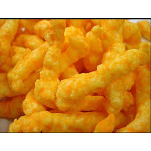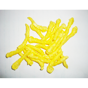 奇多是一種特殊的擠壓膨化型小食品,玉米糝進(jìn)入旋轉(zhuǎn)頭擠壓機(jī)中,在擠壓機(jī)兩個(gè)轉(zhuǎn)盤(pán)的 擠壓與揉搓作用下,玉米糝形成不規(guī)則的扭曲形狀,然后切刀將其切成所需長(zhǎng)度的產(chǎn)品。奇多可以油炸后調(diào)味,也可焙烤后調(diào)味,因 其美味而深受消費(fèi)者歡迎。