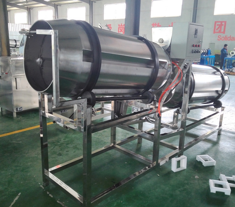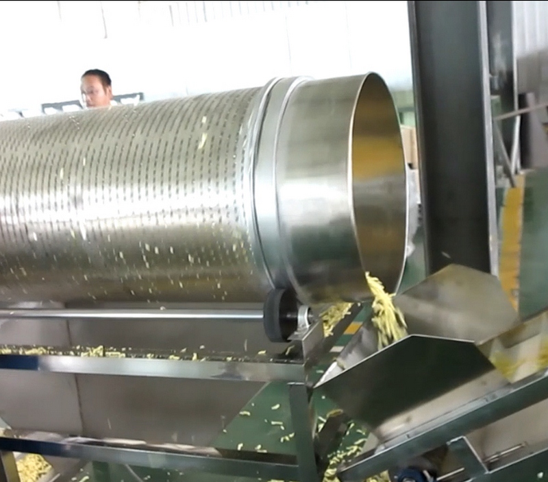 拌粉機(jī)→膨化機(jī)→提升機(jī)-一滾篩-提升機(jī)-連續(xù)油炸機(jī)-振動(dòng)脫油機(jī)--單滾筒調(diào)味機(jī)-調(diào)味機(jī)