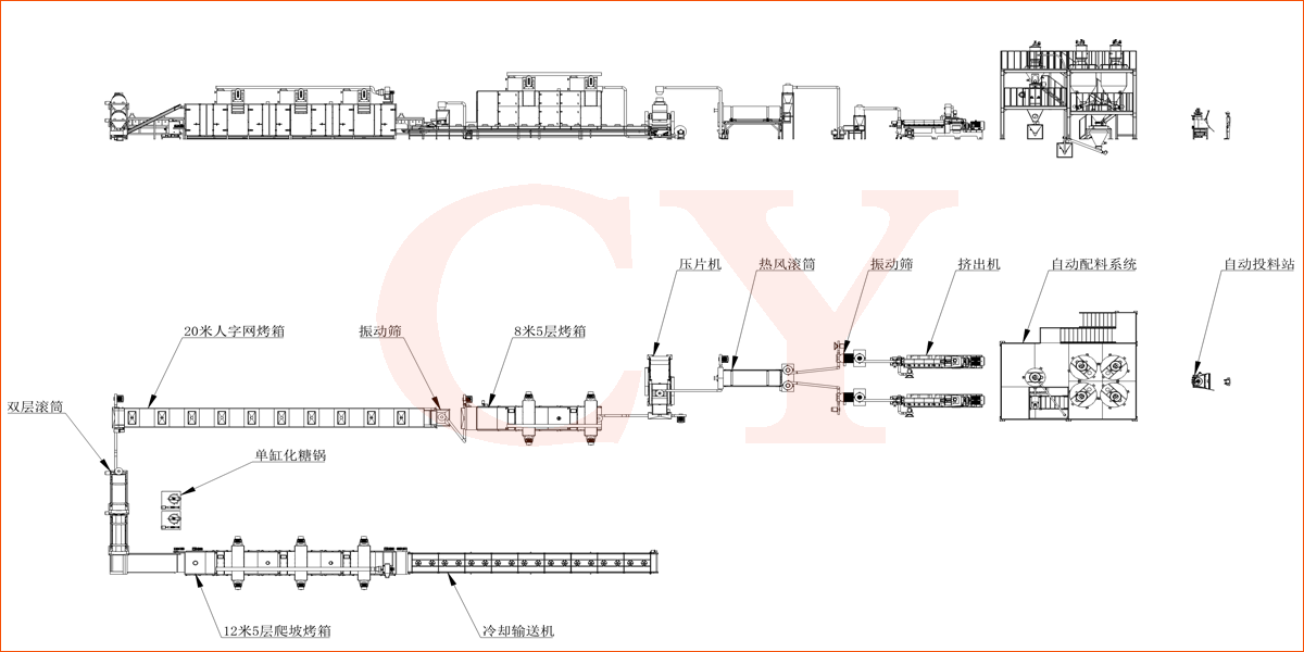早餐玉米片生產(chǎn)線生產(chǎn)線構(gòu)成:
