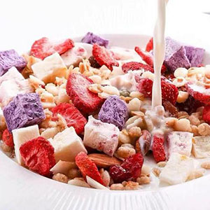 原料混合-擠壓膨化-干燥-冷卻-混合-噴糖-高溫醅烤-冷卻-破碎-包裝