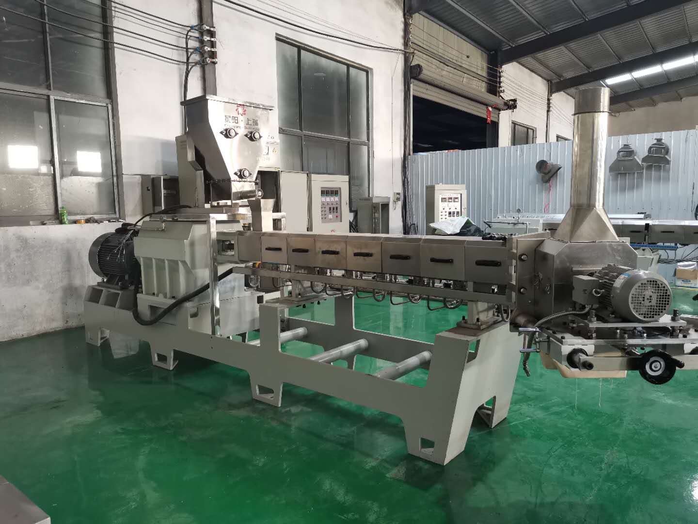 雙螺桿膨化機由供料系統(tǒng)、擠壓系統(tǒng)、旋切系統(tǒng)、加熱系統(tǒng)、冷卻系統(tǒng)、傳動系統(tǒng)、控制系統(tǒng)組成。該機適用原料廣泛、生產產品多樣,變頻調速、自動化程度高、運行平穩(wěn)、使用壽命長。